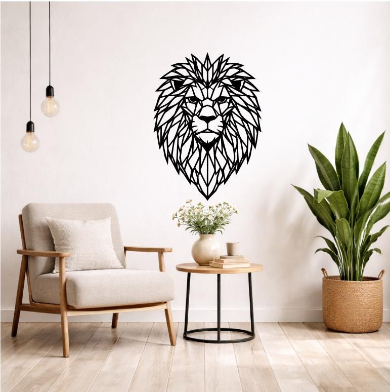 Lion Wall Decor Wood Geometric Silhouette | Modern Animal Wall Decoration Modern Wall Art Black or Colored Pet