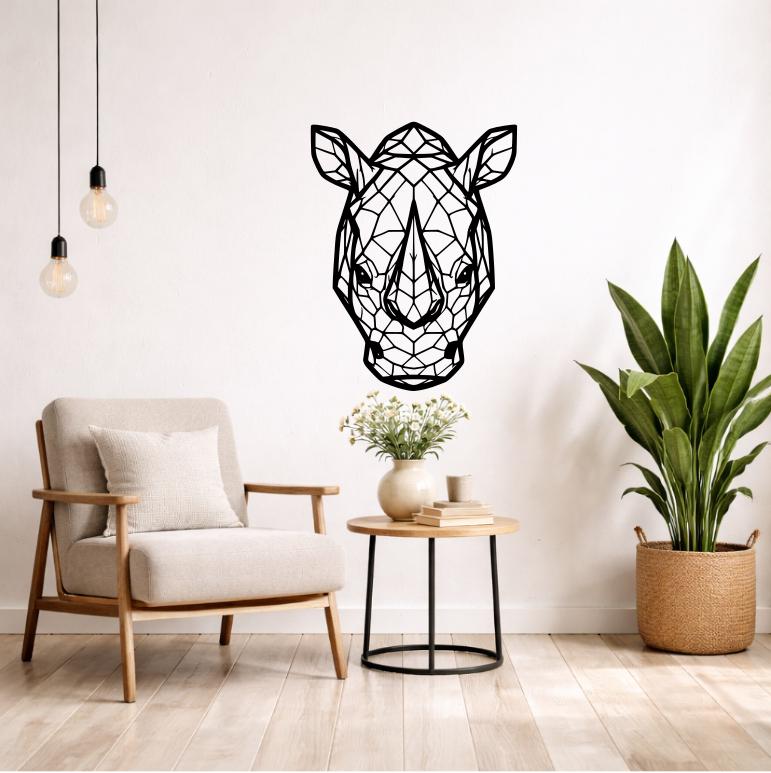 Rhinoceros Wall Decor Wood Geometric Silhouette | Modern Animal Wall Decoration Modern Wall Art Black or Colored Pet
