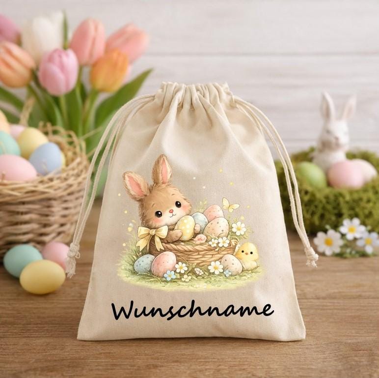 Easter Gift Bags for Children, Kindergarten Bunny Design, Cotton Bags 20×15 cm | OEKO-TEX TEX Suitable for Kindergarten Gifts and Small Gifts for Girls